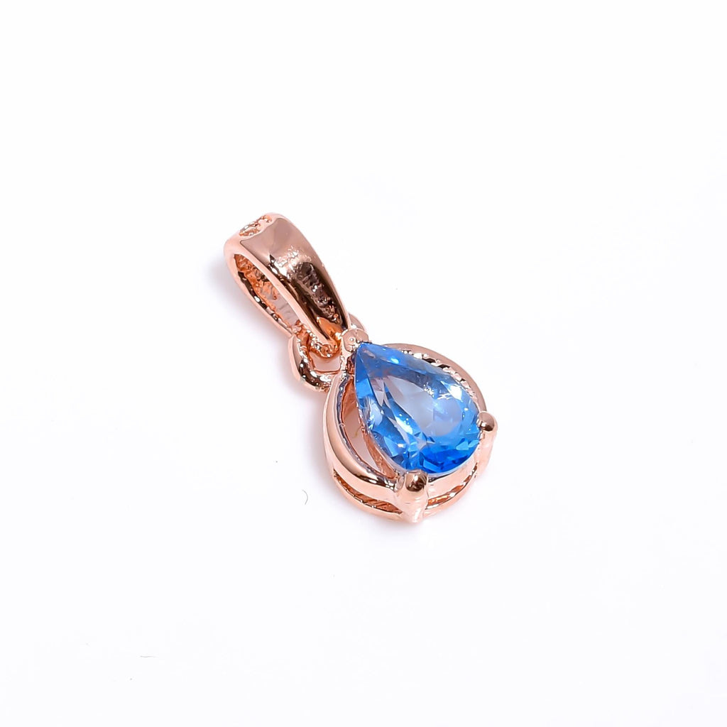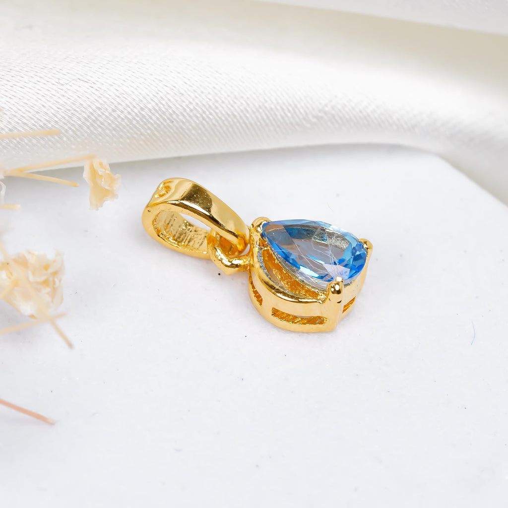 Handmade 925 Sterling Silver Swiss Blue Topaz Pear Pendant