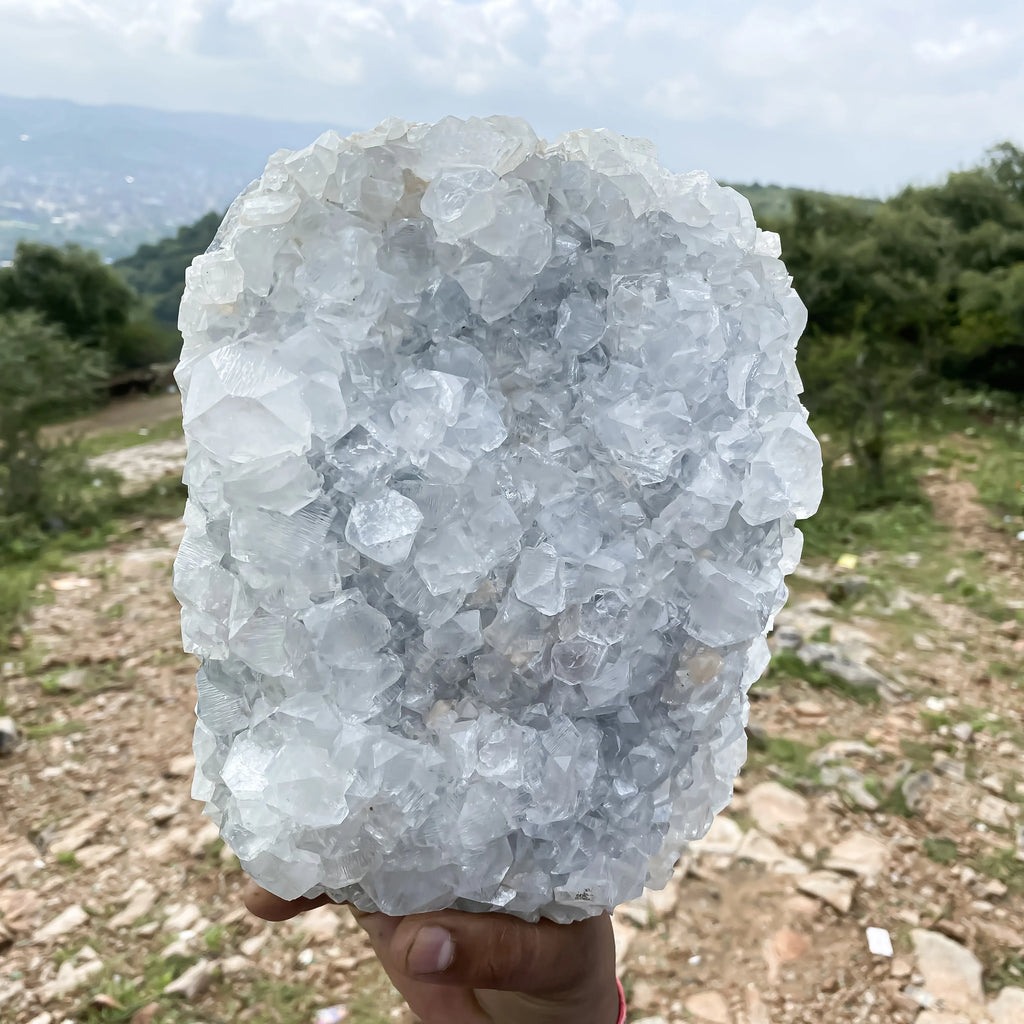 This substantial 5.05 kg cluster measures 23 cm (L) × 18 cm (W) × 12 cm (H) and features pristine, glass-like Apophyllite crystals that shimmer with natural brilliance. Each crystal reflects the purity of Himalayan energy, making it a centerpiece of both beauty and healing.