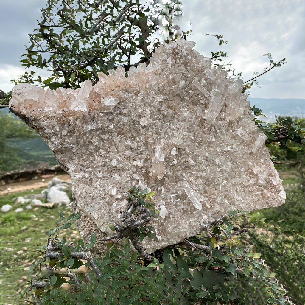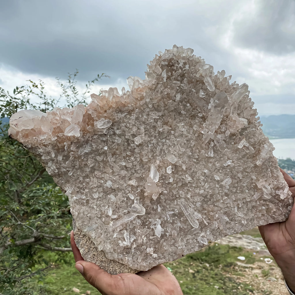 Measuring 35 cm (L) × 28 cm (W) × 13 cm (H), this magnificent cluster glows with gentle blush tones and naturally terminated crystal points that sparkle under light. Each facet reflects warmth, compassion, and harmony — a timeless expression of nature’s artistry.