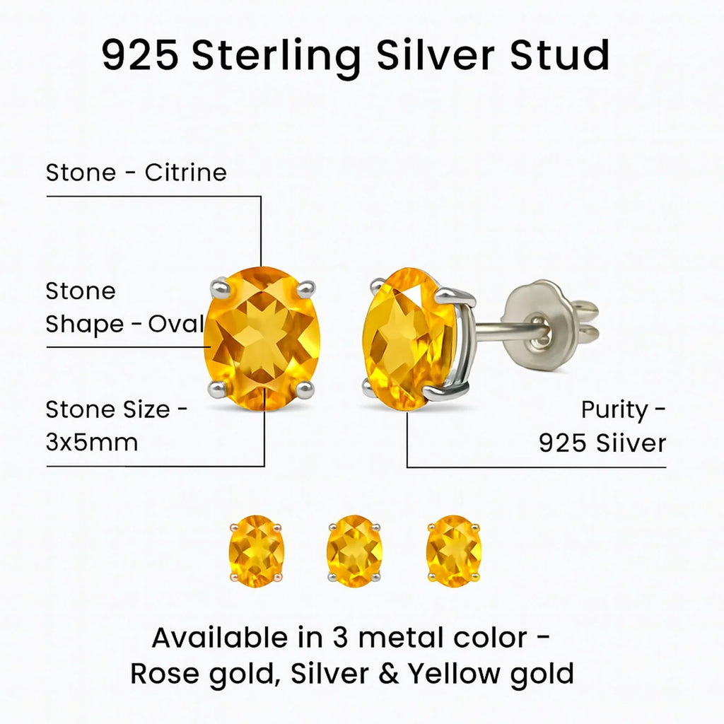 Natural Citrine Stud Earrings, 925 Sterling Silver Jewelry, Yellow Gemstone Studs, Dainty Studs, Wedding Jewelry, Birthday Gift For Her, Valentine‘s Gift for Her