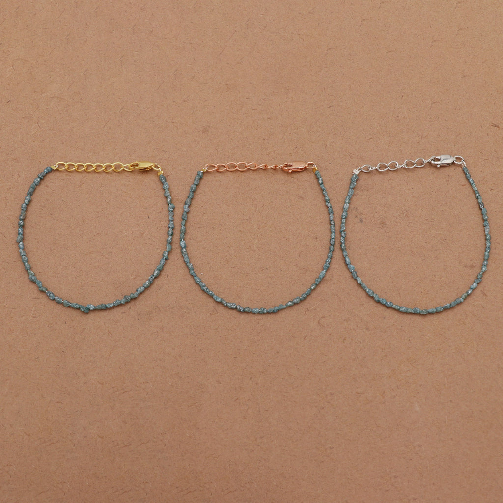 Natural Diamond Bead Bracelet in Sterling Silver – Elegant Minimalist Jewelry