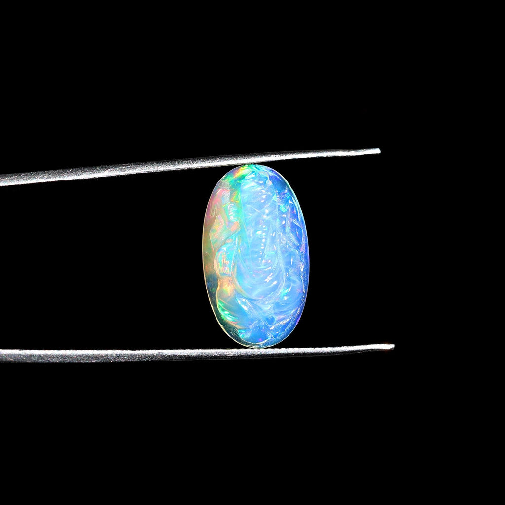 Hand-Carved Ethiopian Opal Ganesha Statue: Hindu God Figurine