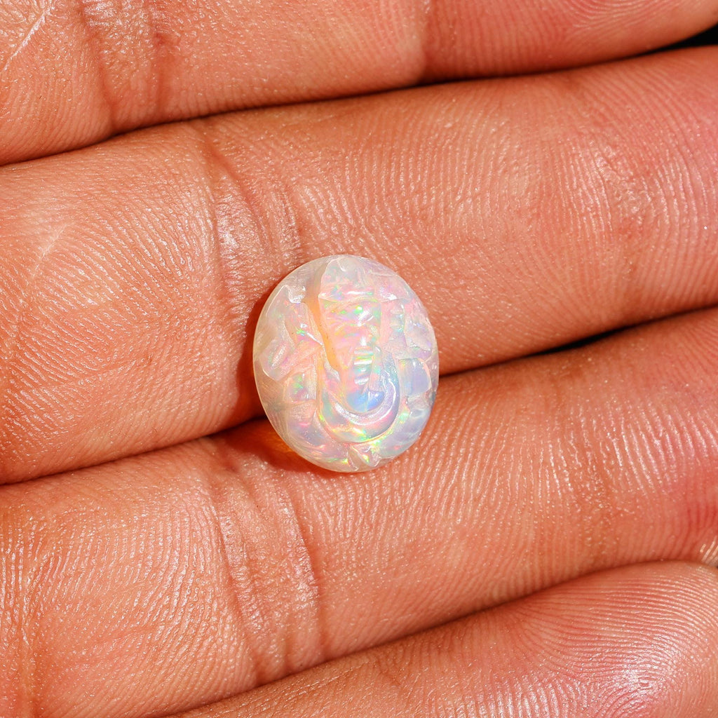 Opal Carving: Handmade Ganesha Statue, Hindu God Sculpture (4.40ct)