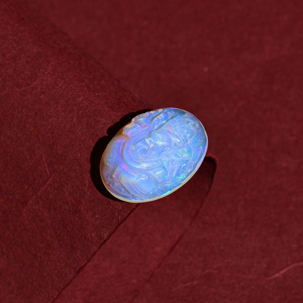 Hand-Carved Opal Ganesha Statue: Ethiopian Gemstone Carving (8.30 Carat)