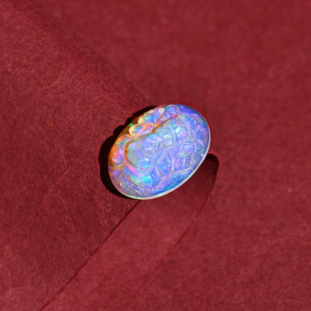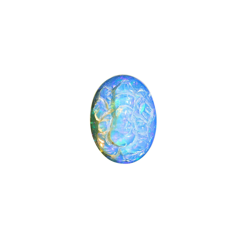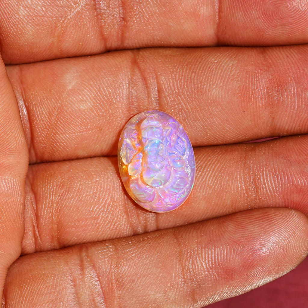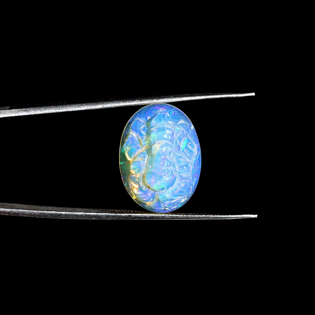 8.60 Carat Carved White Ethiopian Opal Ganesha Figurine