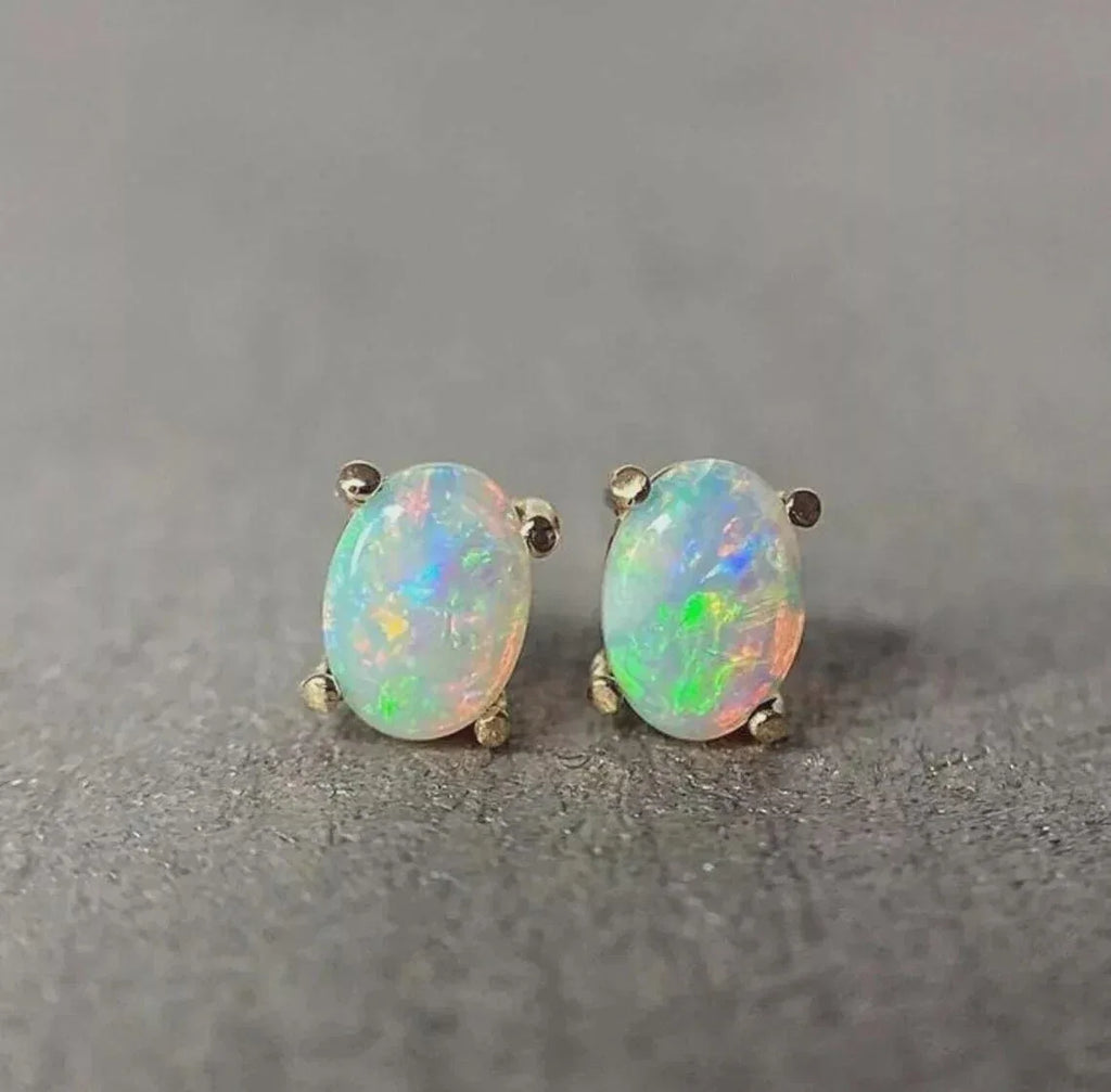 Embrace the luminous beauty of these Natural White Ethiopian Opal Stud Earrings, expertly handcrafted to showcase their captivating rainbow flashes and soft, milky glow. Each oval-cut opal is set in high-quality 925 sterling silver, creating a timeless piece that radiates elegance and meaning.