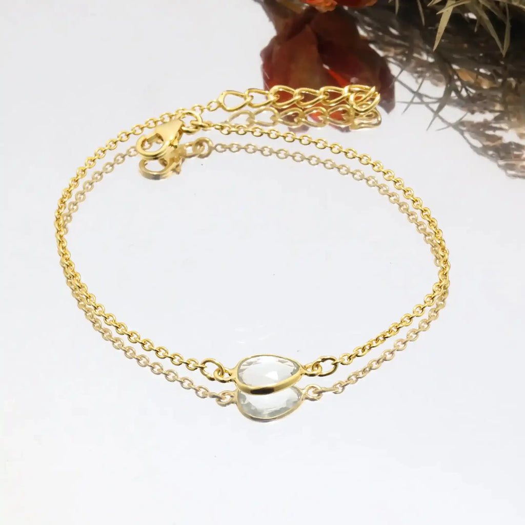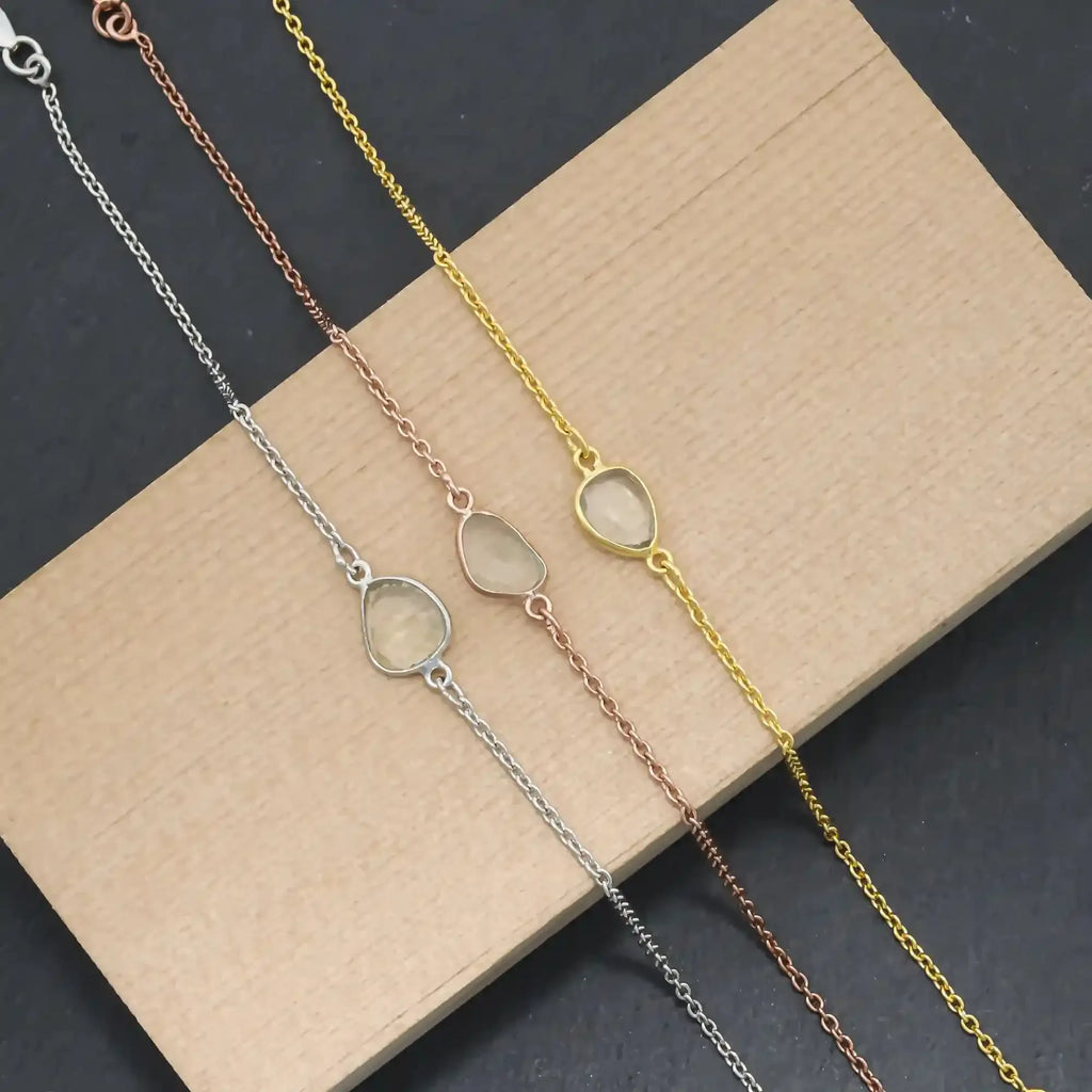 This elegant Green Amethyst Bracelet features a natural rose-cut green amethyst gemstone set in a refined and minimalist bracelet design. The gentle pastel green tone with soft luminous reflections gives the bracelet a calm and sophisticated appearance, making it a timeless addition to any fine jewelry collection.