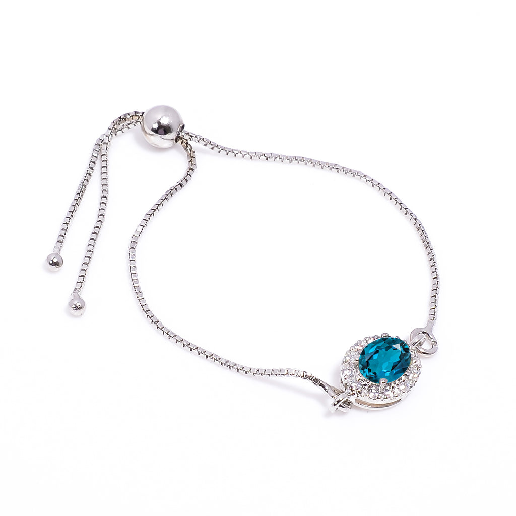 This elegant London Blue Topaz Silver Bracelet features a natural oval-cut London blue topaz gemstone set in a clean and refined sterling silver bracelet design. The deep blue tone with subtle teal undertones gives the bracelet a rich and sophisticated appearance, making it a timeless addition to any jewelry collection.
