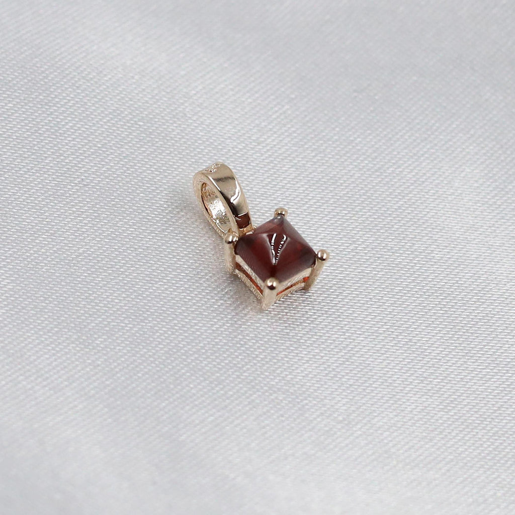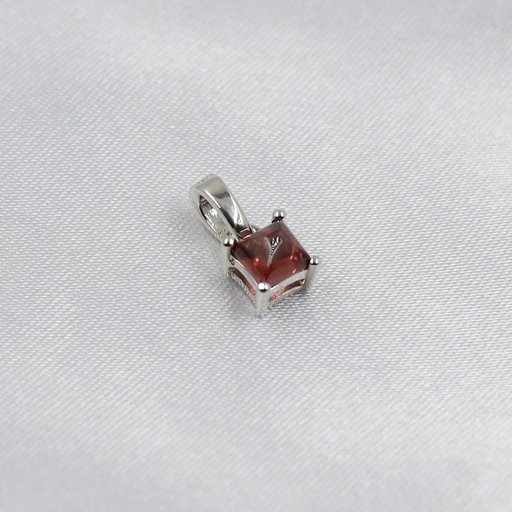 Natural Garnet Square Pendant, Red Crystal Necklace, Vintage Style Silver Jewelry, 925 Silver January Birthstone Jewelry for Women‘s