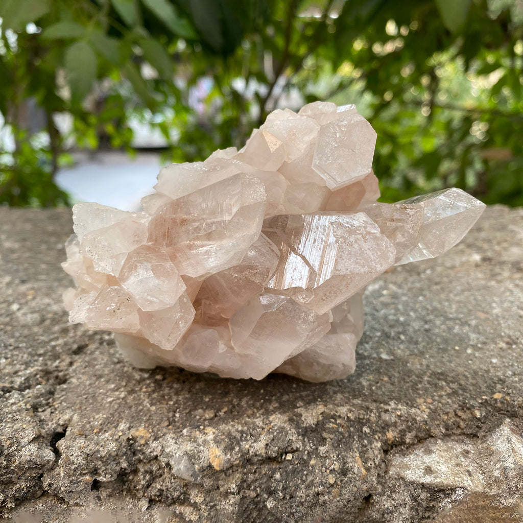 This Natural Himalayan Pink Quartz Cluster, weighing 460g, carries soft, nurturing energy known for promoting emotional healing, love, and inner peace. Pink Quartz is celebrated for its gentle vibration that comforts the heart, dissolves stress, and supports emotional balance. This cluster features naturally formed points with a soothing rosy hue, making it perfect for meditation spaces, Reiki healing, spiritual altars, and peaceful home décor. Its calming presence enhances harmony, encourages self-love, and promotes a warm, uplifting environment. Ideal for collectors, healers, and anyone seeking a naturally beautiful crystal with comforting energy.