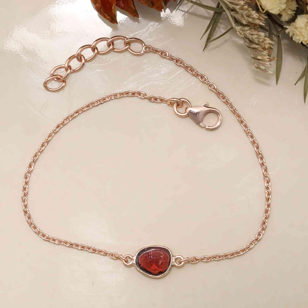This elegant Garnet Bracelet features a natural rose-cut garnet gemstone set in a refined and minimalist bracelet design. The deep red hue of the garnet gives the bracelet a rich and timeless appearance, making it a striking addition to any fine jewelry collection.