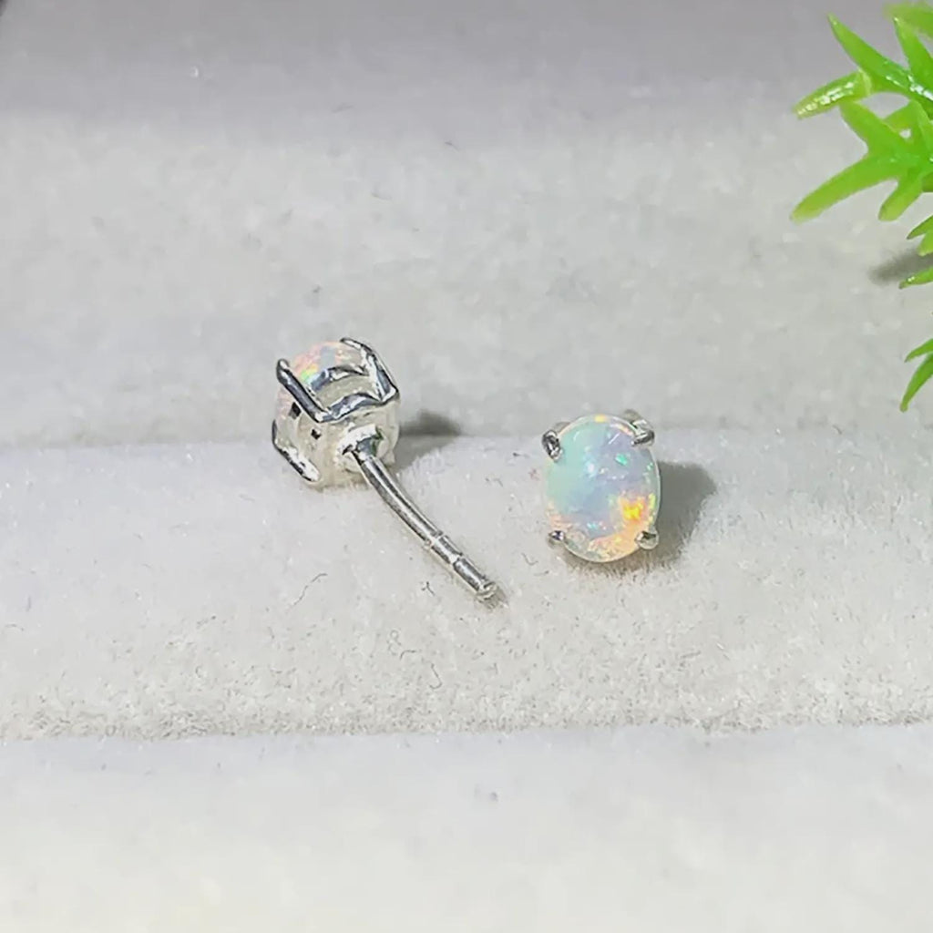 Embrace the luminous beauty of these Natural White Ethiopian Opal Stud Earrings, expertly handcrafted to showcase their captivating rainbow flashes and soft, milky glow. Each oval-cut opal is set in high-quality 925 sterling silver, creating a timeless piece that radiates elegance and meaning.