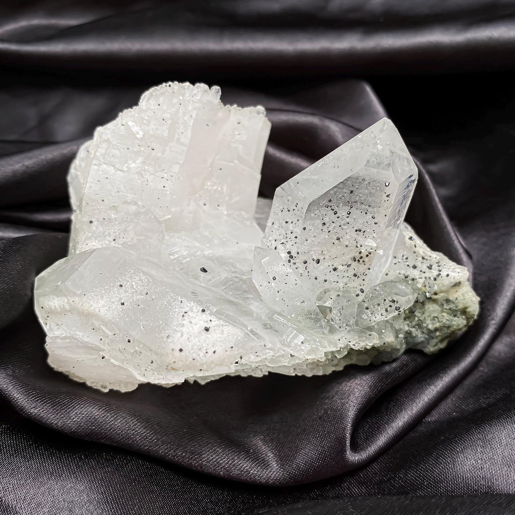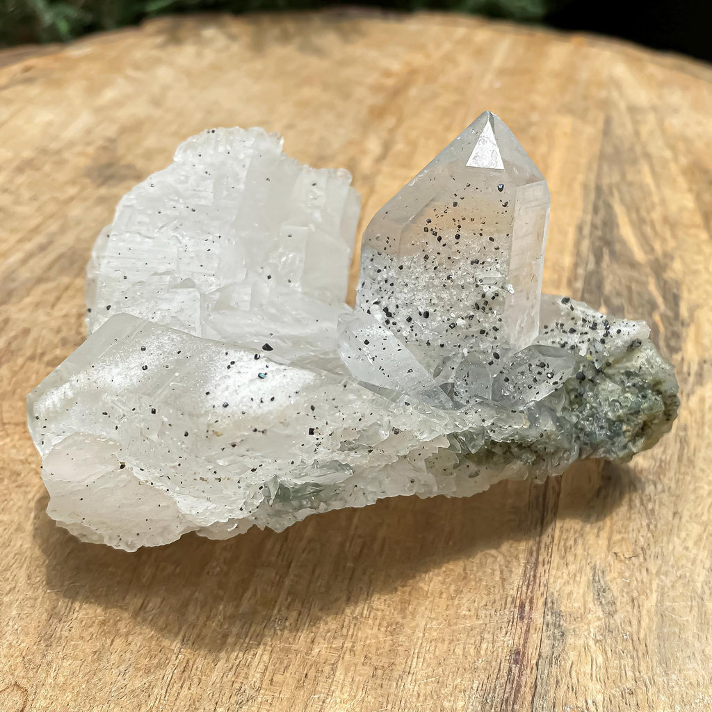 Raw Clear Quartz with Black Anatase & Green Chlorite 275gm Natural Himalayan Crystal, Mineral Rough