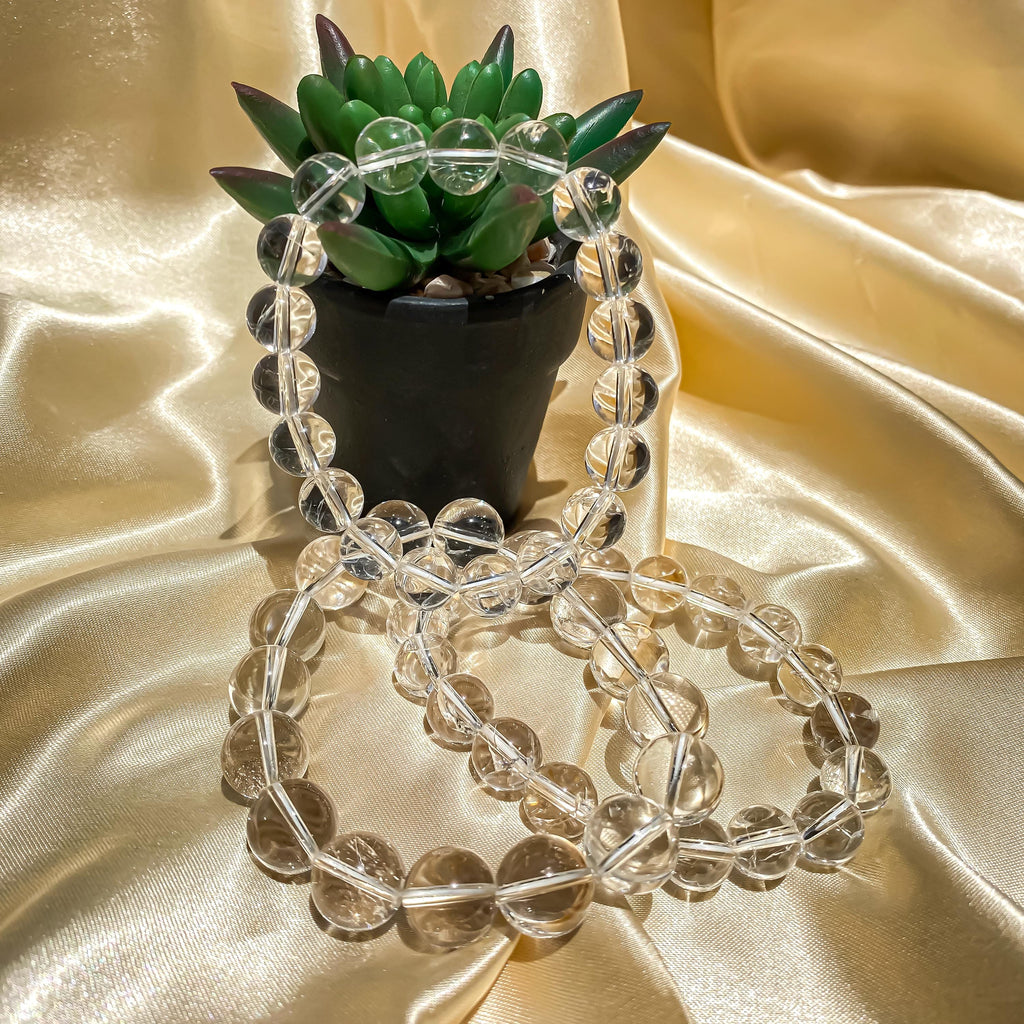 Elevate your energy with the radiant beauty of our Himalayan Clear Quartz Bracelet, featuring naturally occurring rainbow inclusions. Hand-selected from the sacred Himalayan mountains, each crystal bead showcases the pristine clarity of clear quartz, with magical flashes of iridescent rainbows dancing within.