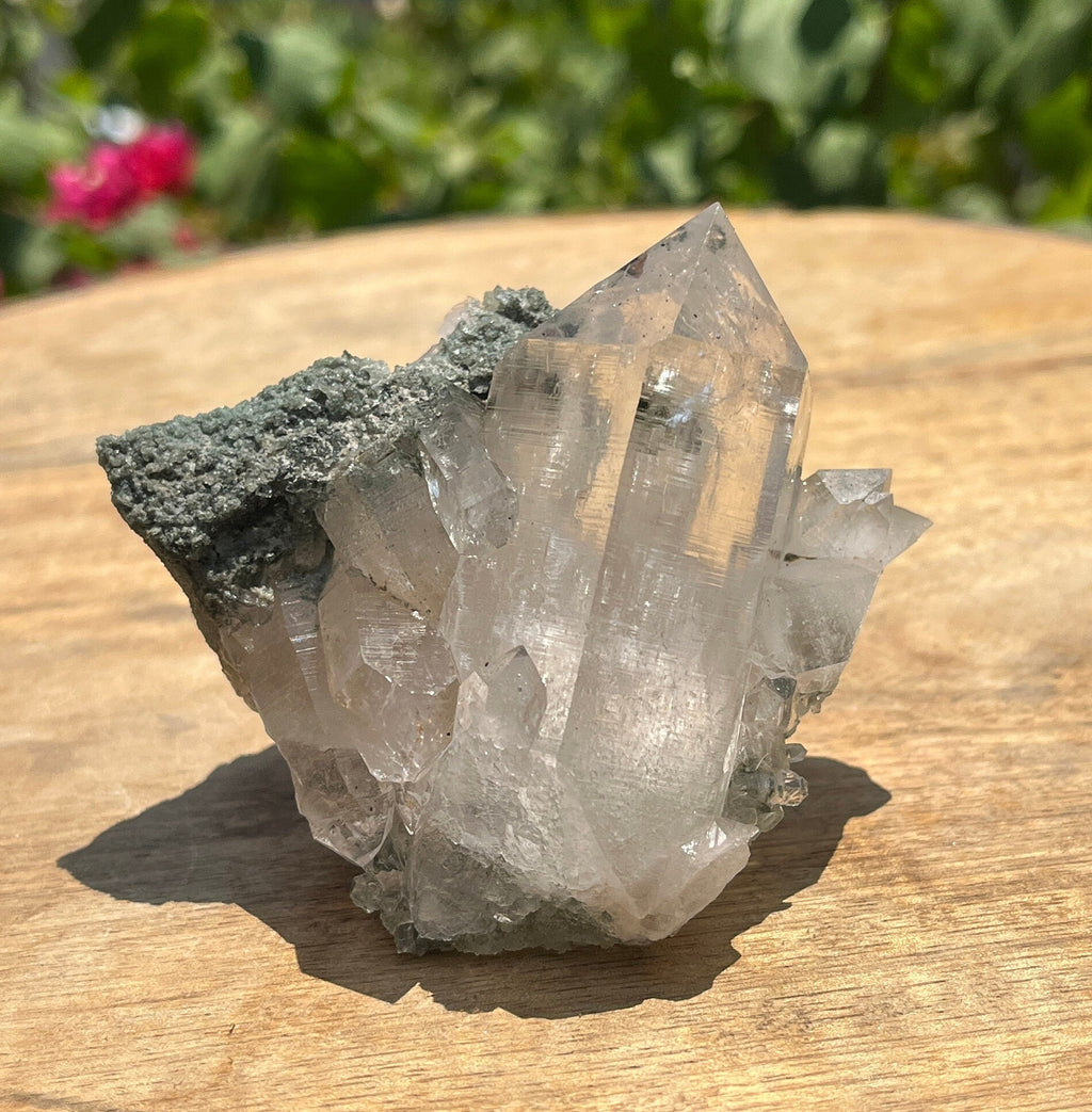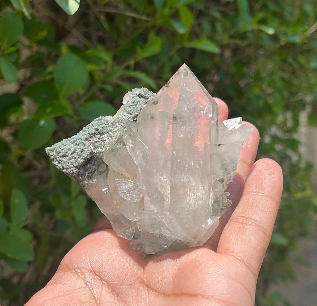 Chlorite Quartz Crystal Point: Raw Mineral Specimen, Healing Stone, 220gm