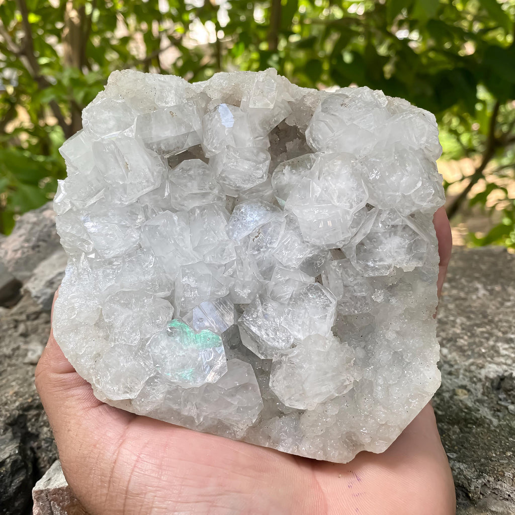 White Apophyllite is highly regarded for its calming and uplifting energy. Known as a stone of spiritual connection, it helps to clear negative energies, enhance intuition, and promote inner peace. This crystal is often used in meditation to open the crown chakra, supporting clarity of thought and a deeper sense of awareness. White Apophyllite is also believed to reduce stress, ease anxiety, and create a soothing environment, making it a beautiful healing stone for both personal energy work and home decor.