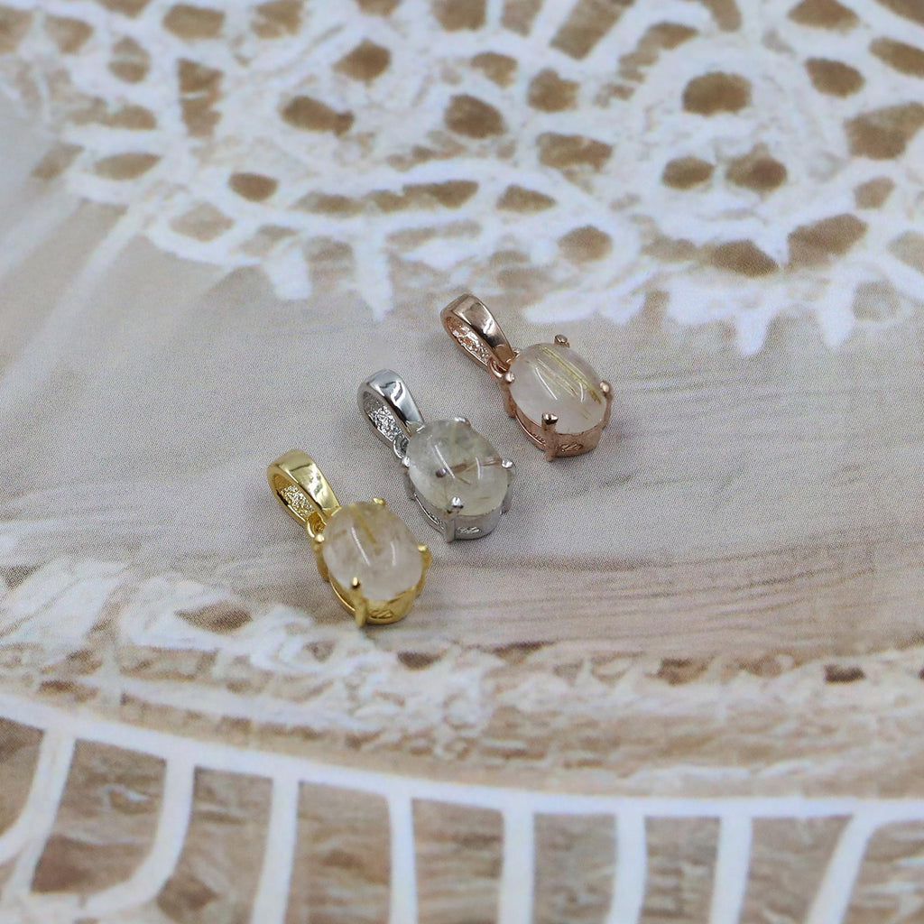 Golden Rutile Pendant – Natural Rutilated Quartz in Sterling Silver – Bohemian Gemstone Necklace for Women, Elegant Boho Crystal Jewelry