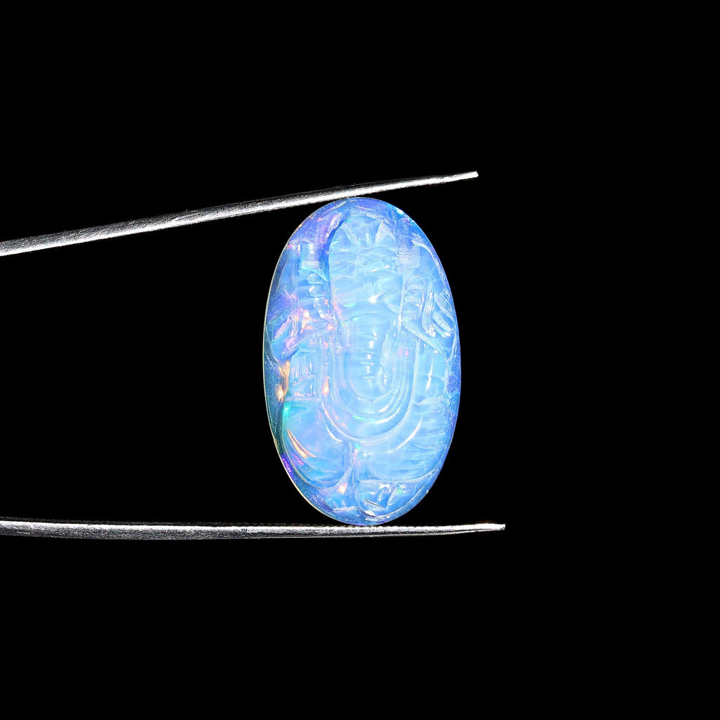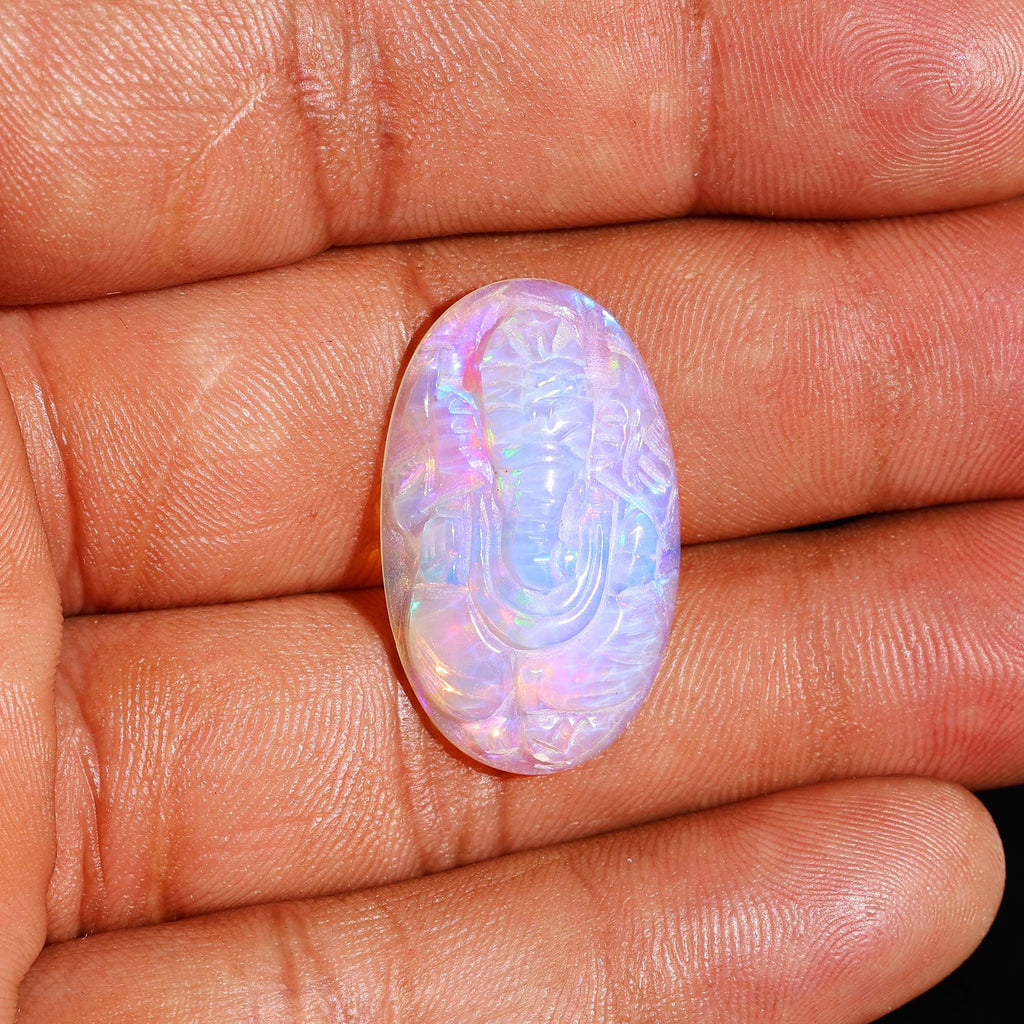Hand-Carved White Opal Ganesha Figurine: Crystal Energy God Idol