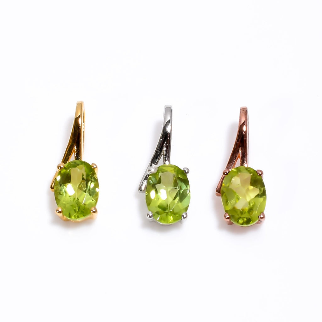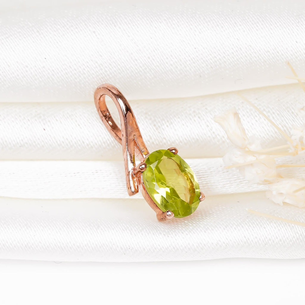 Peridot Pendant: 925 Sterling Silver & Rose Gold, Oval Gemstone