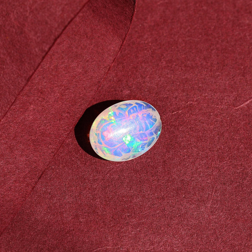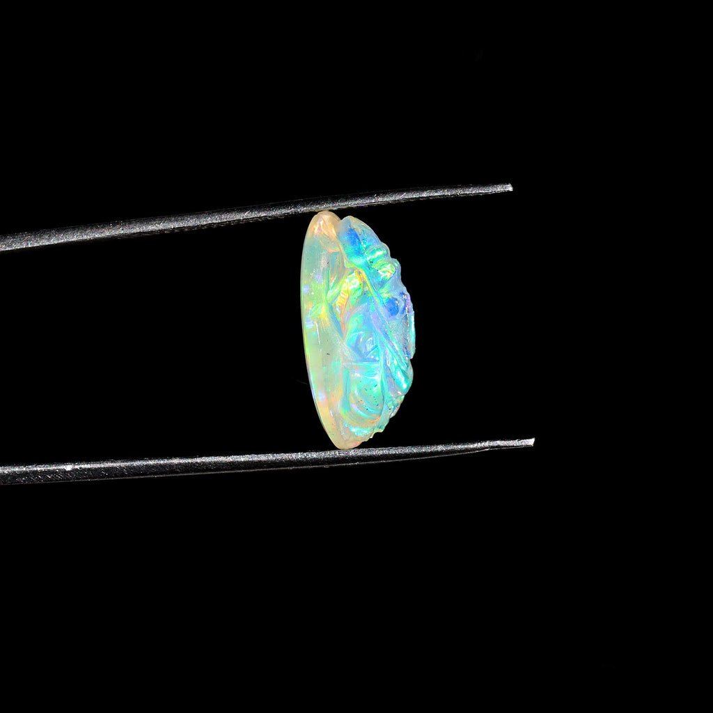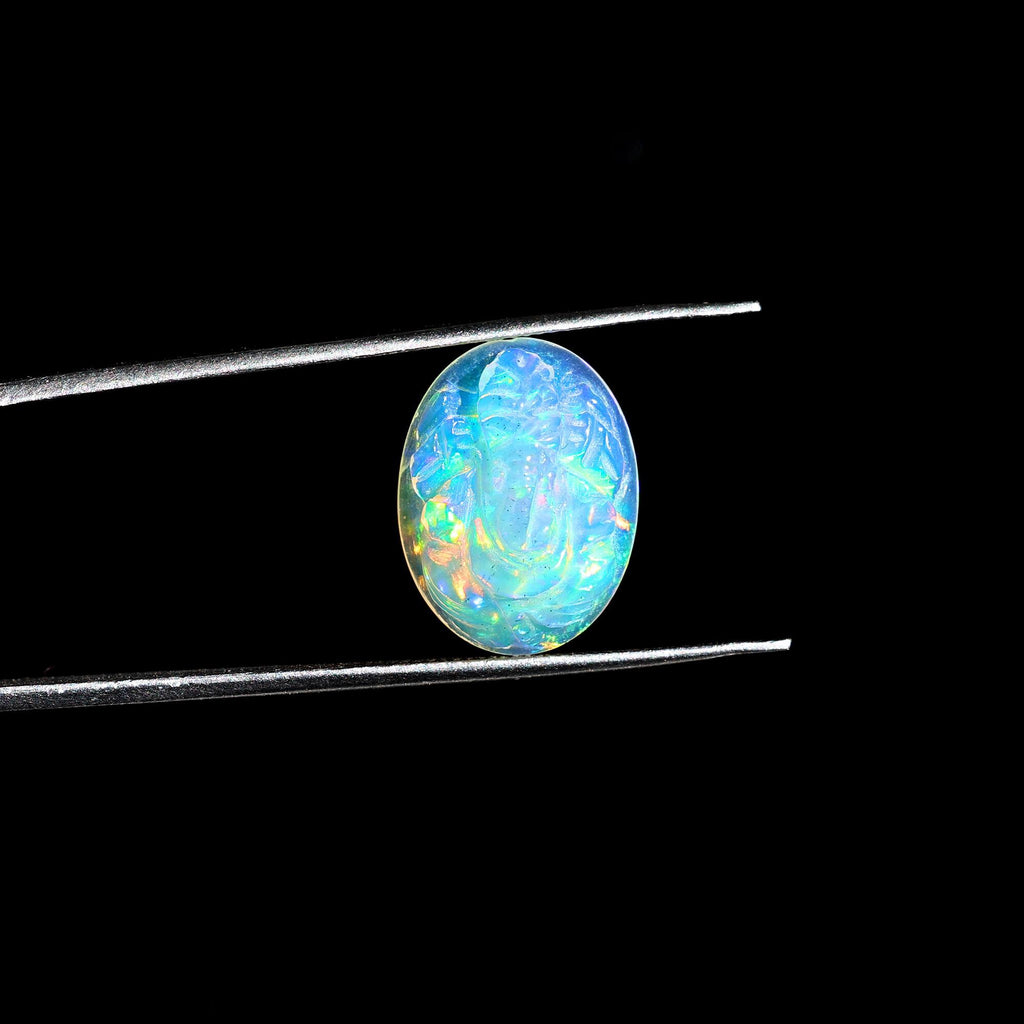 Ethiopian Opal Ganesha Carving: 5.20 Carat Welo Fire Gemstone (12x16mm)
