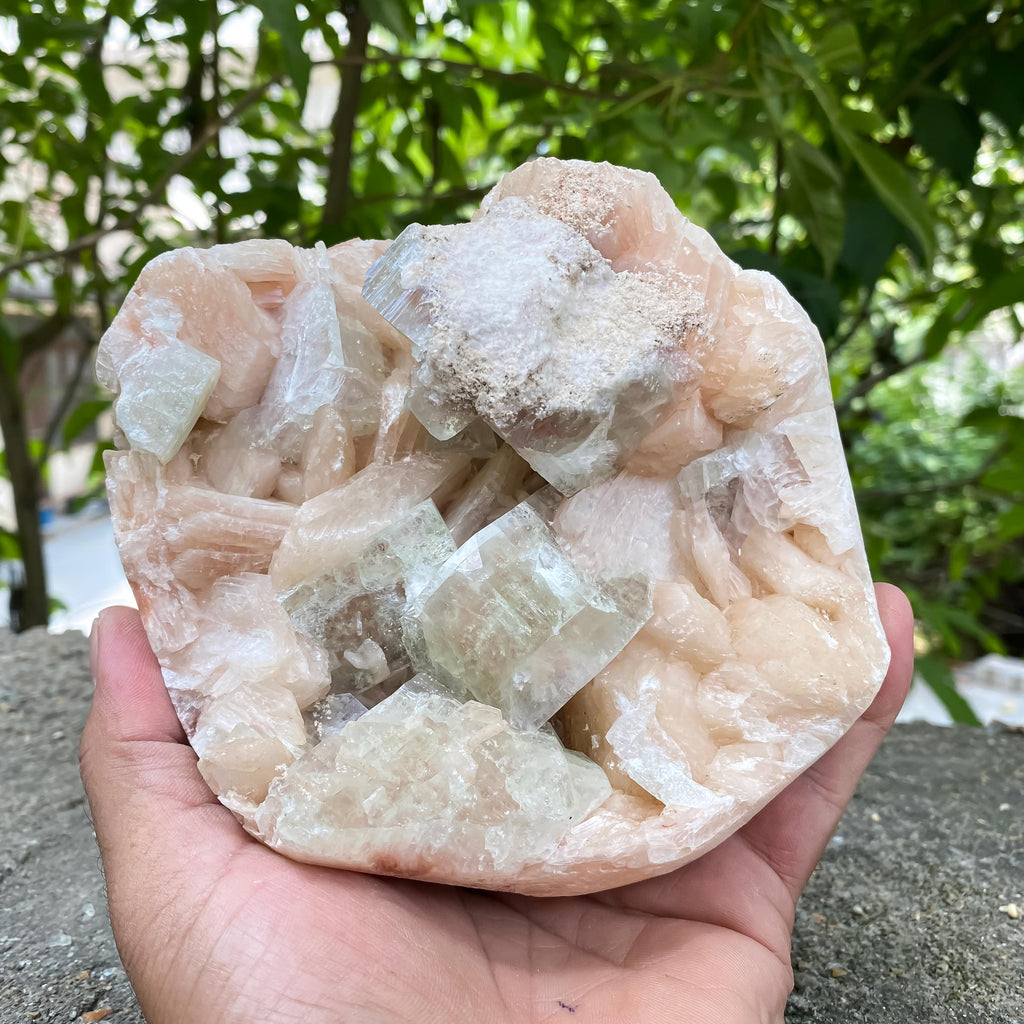 The Stilbite Apophyllite specimen is a powerful healing crystal combination that radiates calming and uplifting vibrations. Stilbite brings peace of mind, emotional balance, and heart-centered energy, helping to release stress and encourage love and compassion. Apophyllite, known as a high-vibration stone, promotes spiritual awakening, clarity of thought, and a deep connection to higher guidance. Together, they create a harmonizing energy that cleanses negativity, enhances meditation, and supports inner peace and personal growth.