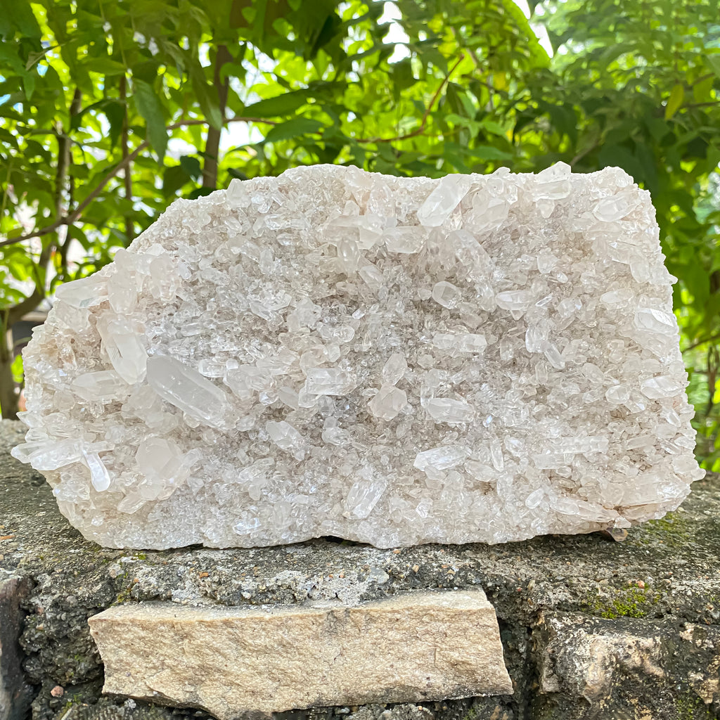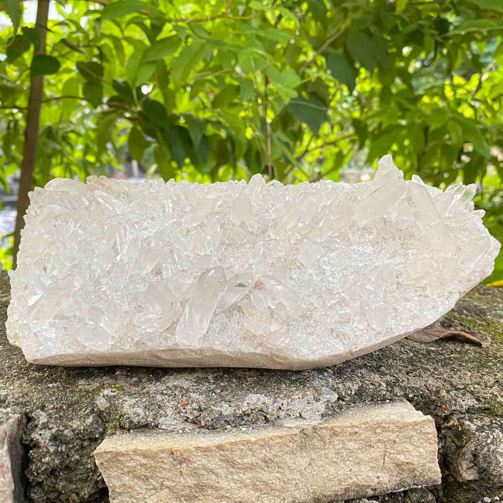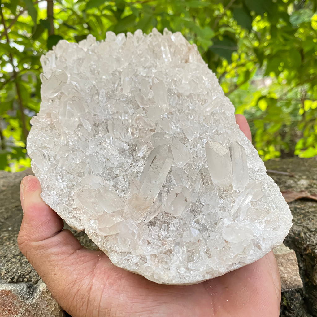 This Natural Himalayan White Quartz Cluster, weighing 1750g, is a beautifully formed high-vibration healing crystal known for its clarity, purity, and strong energy-cleansing properties. White Quartz radiates fresh, uplifting energy that helps remove negativity, amplify intentions, and bring emotional balance into any environment. Its naturally grown points and bright icy-white glow make this cluster a stunning choice for meditation rooms, Reiki healing spaces, spiritual altars, energy grids, and home décor. Known as a master healer, White Quartz supports mental clarity, spiritual growth, and a peaceful energy flow, making it ideal for collectors, healers, and anyone who appreciates natural Himalayan minerals. This piece carries a clean, serene presence that enhances focus, harmonizes the surroundings, and promotes a calm state of mind for daily well-being.