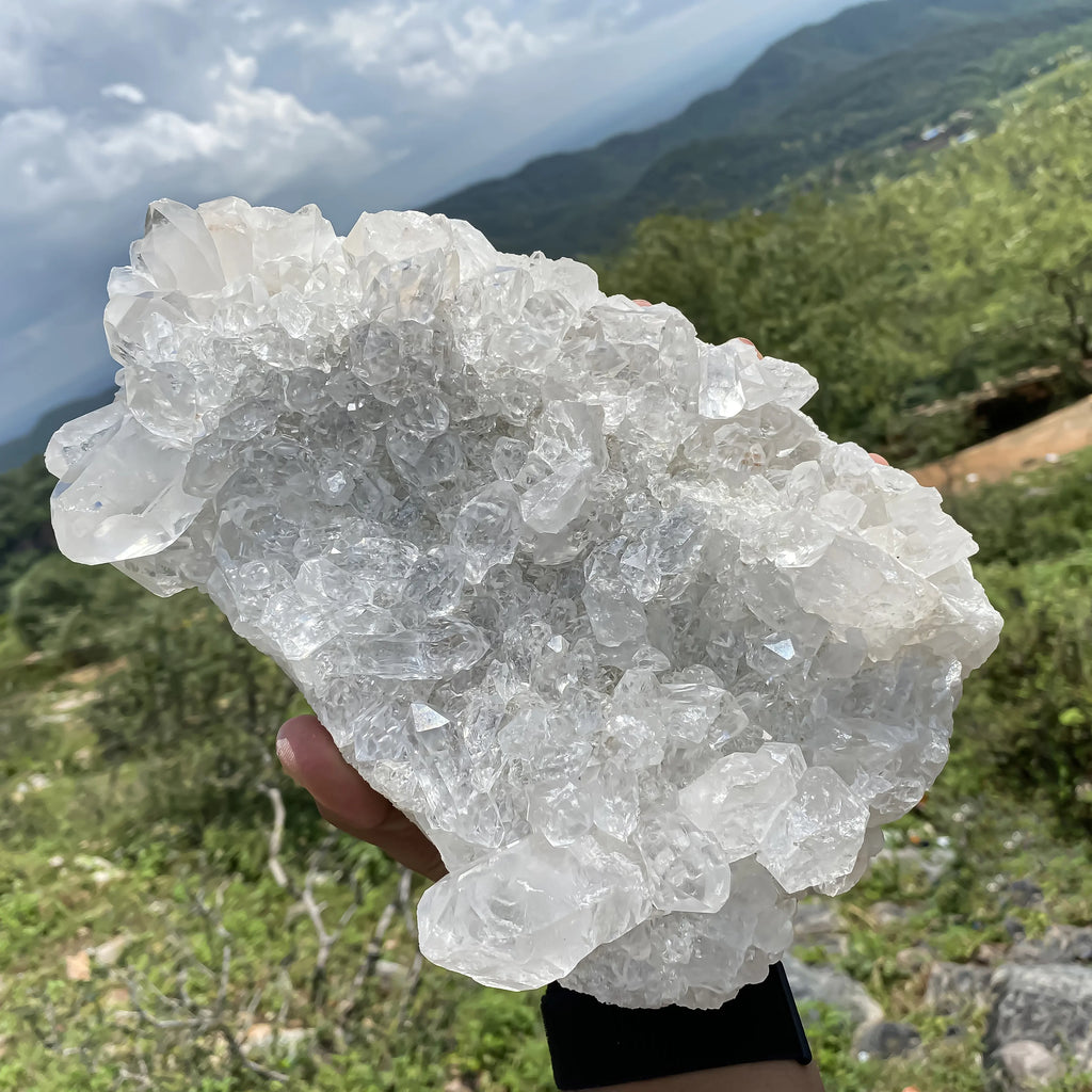 White Quartz, revered as the Master Healer, amplifies energy, dispels negativity, and harmonizes the mind and spirit. Ideal for meditation, reiki, or as a centerpiece in your home, this cluster radiates tranquility and spiritual light.