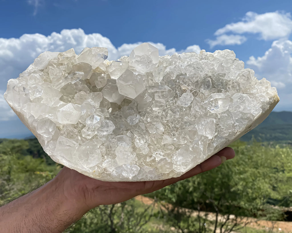 White Quartz, known as the Master Healer, amplifies energy, purifies the aura, and promotes clarity of thought. Perfect for meditation spaces, healing studios, or elegant décor, this large cluster embodies calmness and spiritual balance.