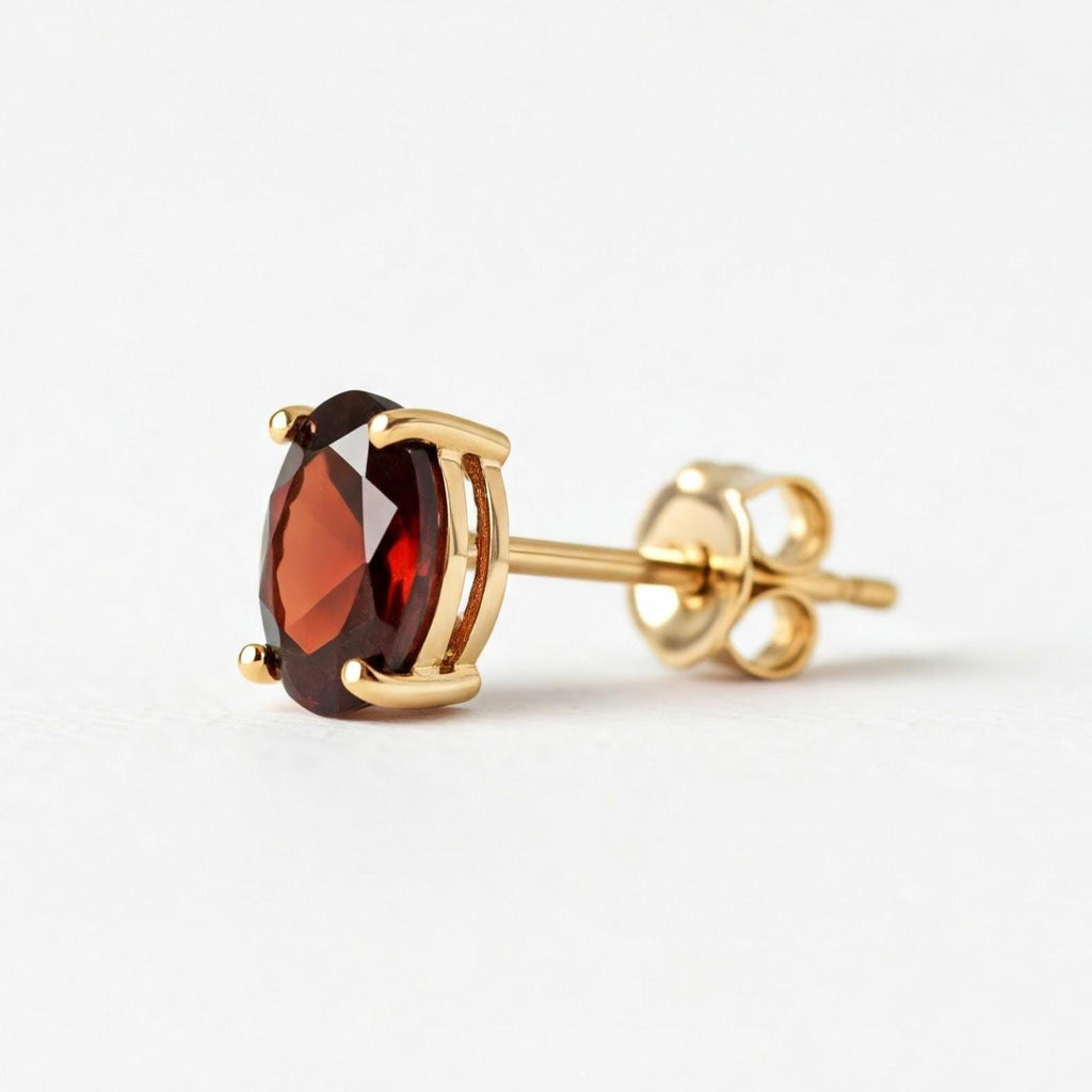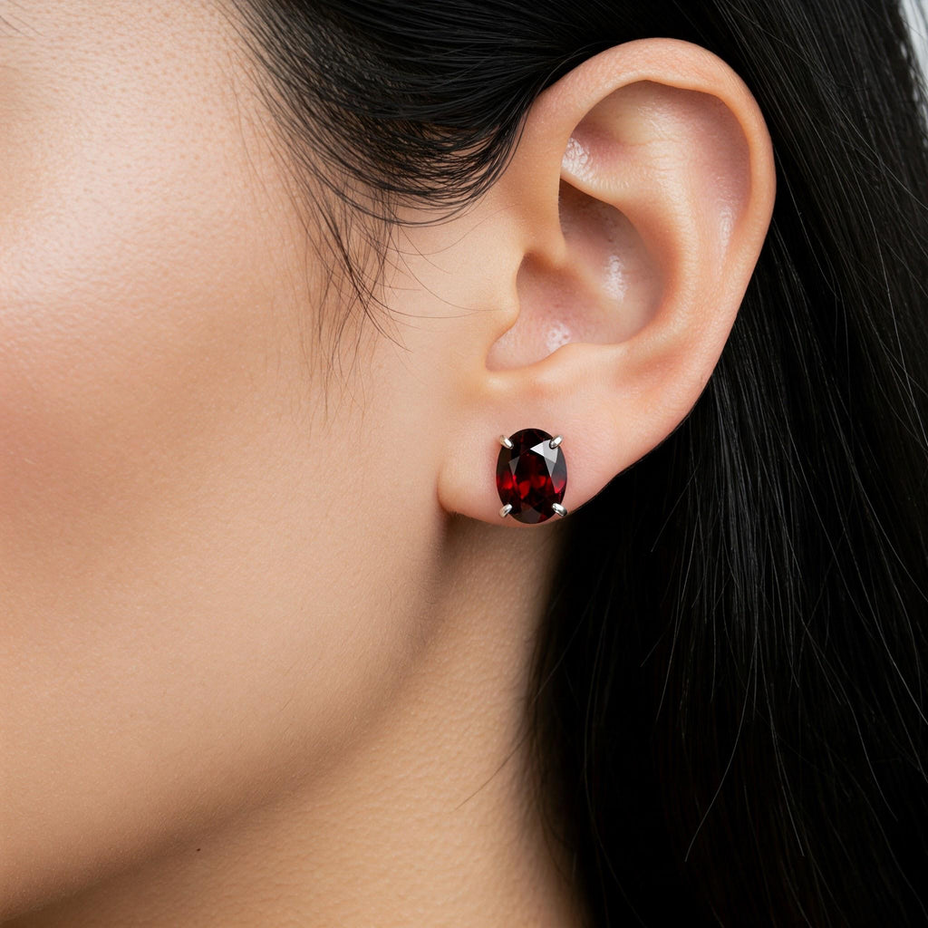A bold yet timeless statement with these Garnet Faceted Stud Earrings, handcrafted in solid 925 sterling silver. Each stud features a deep red natural garnet, precision-faceted in an elegant oval shape and securely set in a polished prong setting to enhance its fiery brilliance. Available in two sizes — 3x5mm and 5x7mm — these earrings are perfect for both everyday elegance and special occasions. Choose from three beautiful metal finishes: classic silver, romantic rose gold, and radiant yellow gold. A thoughtful gift for January birthdays, anniversaries, or anyone who appreciates timeless gemstone beauty.