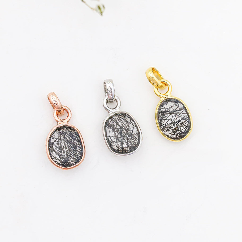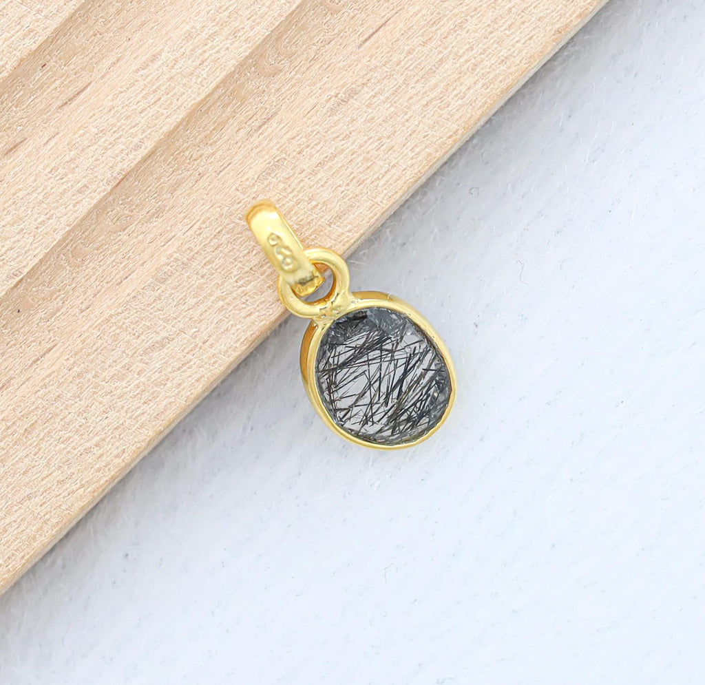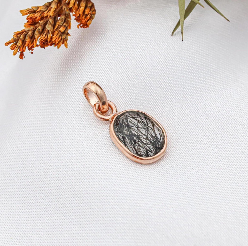 Black Rutile Rose Cut Pendant, 925 Silver Gemstone Necklace, Unique Rutile Pendant Jewelry, Handmade Natural Gemstone Necklace