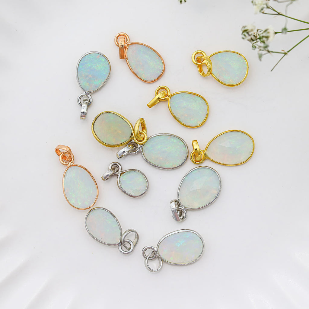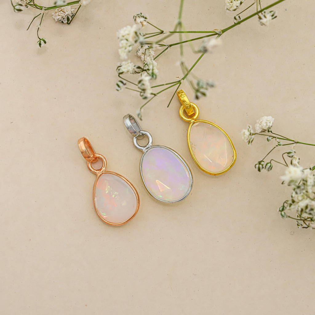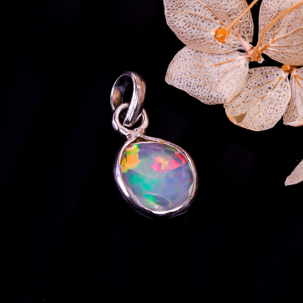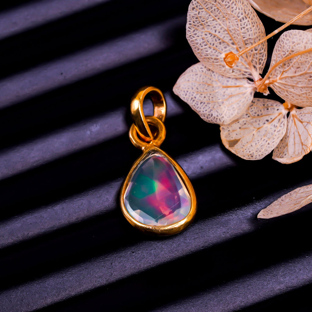 Natural Fire Opal Pendant Jewelry, Multi-Color Gemstone, 925 Silver Pendant, Rose Gold-Yellow Gold Custom Jewelry Wedding Gift Her